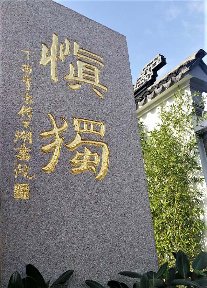 易园彰显了优秀传统文化的意蕴。该园精致小巧,设置了与中国古代哲学智慧相关的“21景”,主要由“自强不息”、“厚德载物”、“紫气东来”、“秋水逍遥”、“金桂考槃”、“灵溪荷影”、“鱼乐濠桥”、“知行合一”、“书院碑林”、“云根紫薇”、“香溪云泉”、“叠石三易”、“飞瀑双鱼”等多处景观构成。