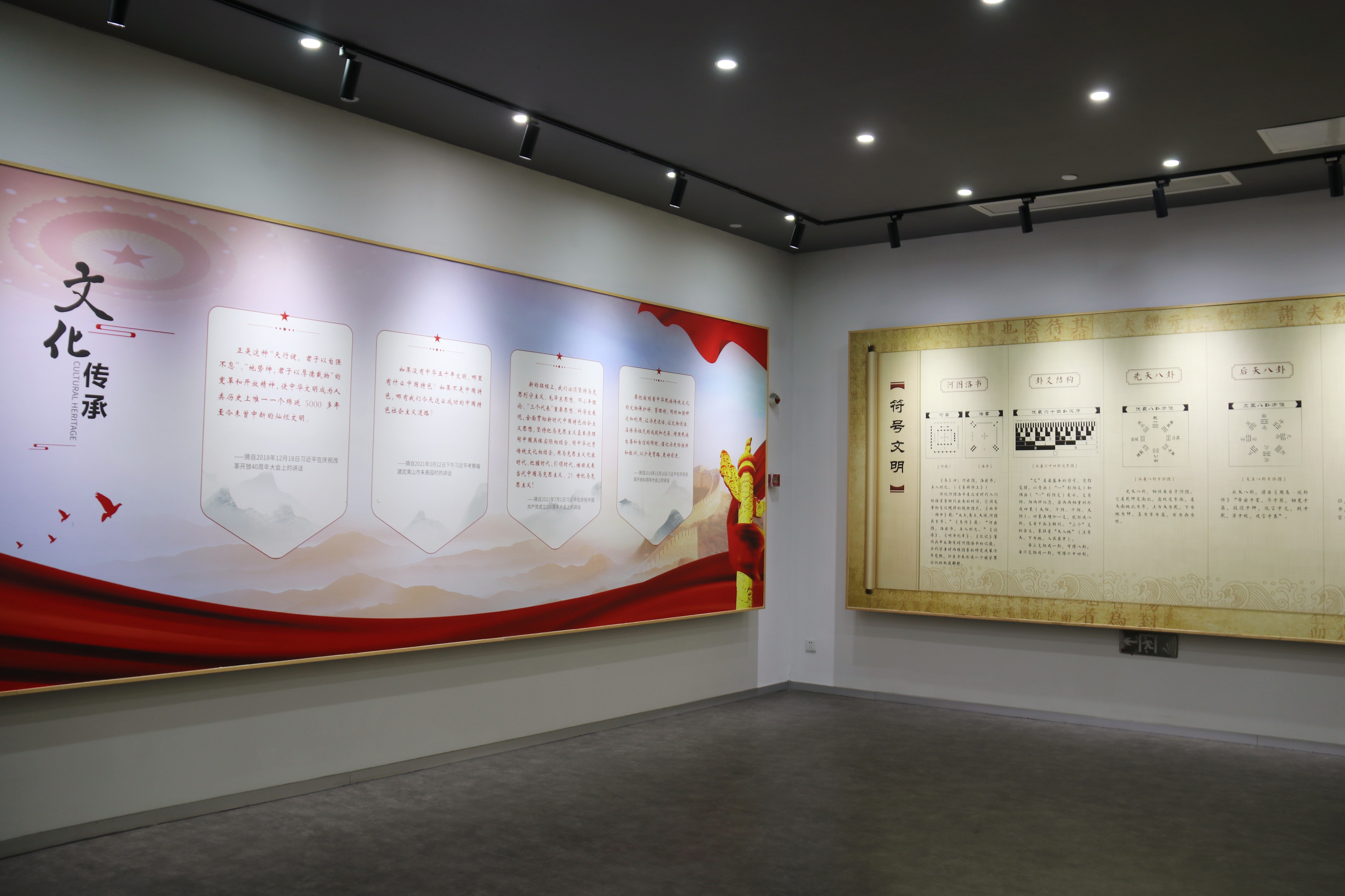 传统文化馆以“中华文明之源,民族生存之道”为展览主题,坚持“探寻易道现代意义,启迪当代经世智慧”的定位,发挥传统文化教研基地、现代易学普及之窗的功能。展馆分为序厅、易道源流厅、现代易学厅、现代易学与现代文明厅、易学体验厅五个展区。