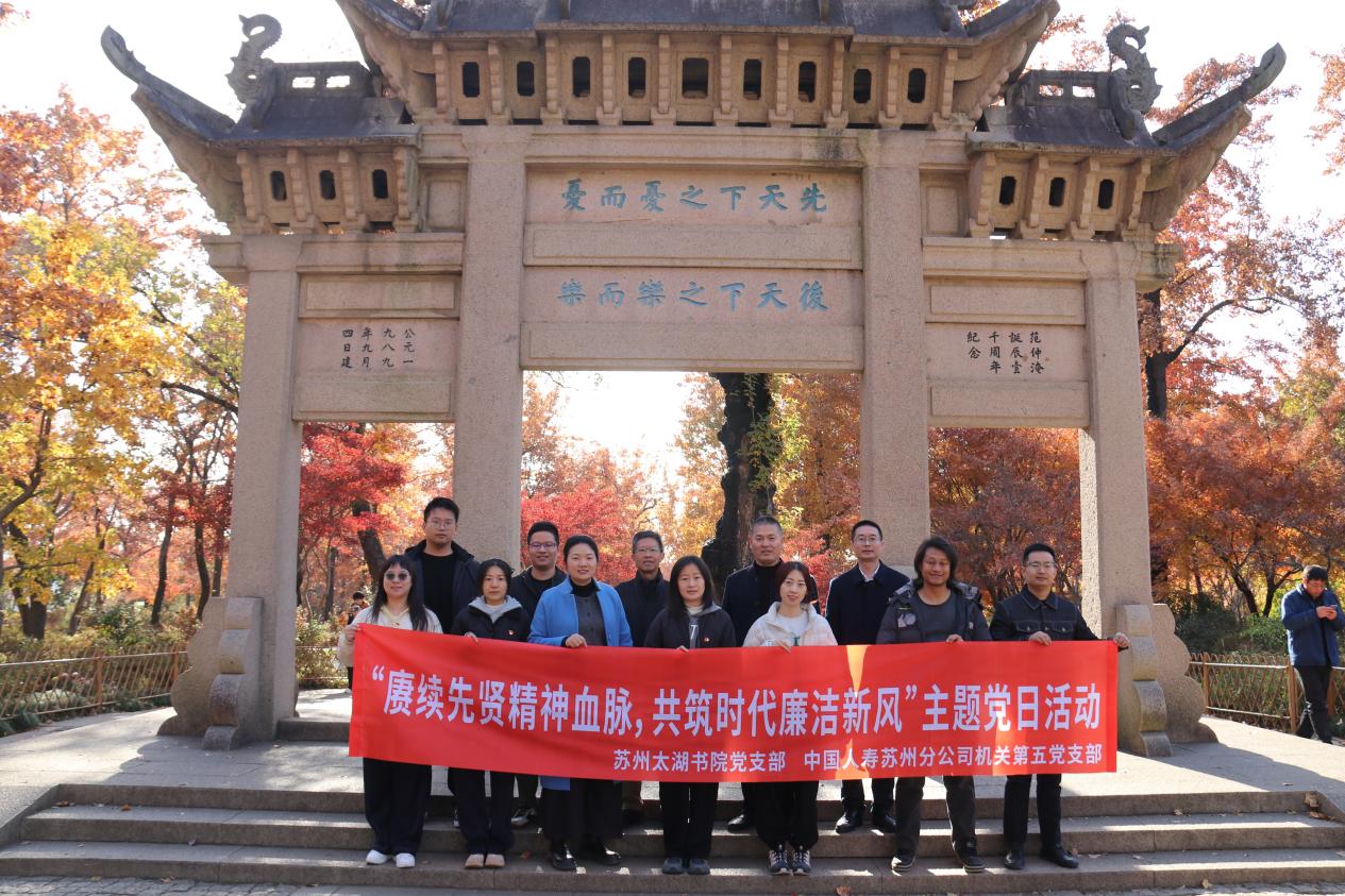 “赓续先贤精神血脉,共筑时代廉洁新风” ——苏州太湖书院党支部与中国人寿苏州分公司机关第五党支部联合开展主题党日活动